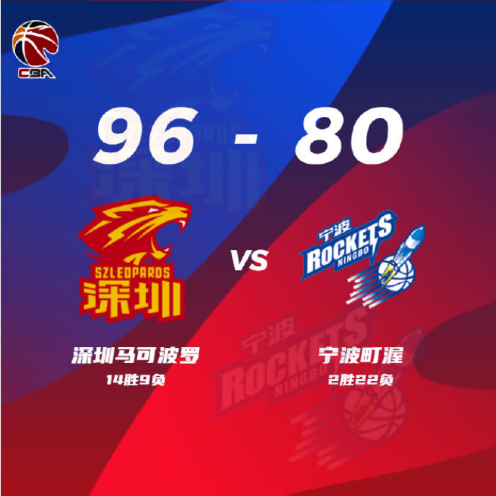 2022-2023赛季中国男子篮球职业联赛(CBA)常规赛第24轮8日开战,深圳队以96:80战胜宁波队,止住三连败颓势;辽宁队以110:92大胜北控队。
