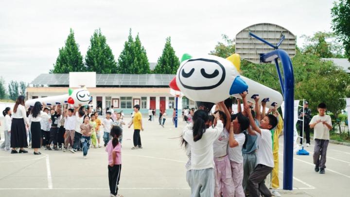金秋九月,在辽宁省孤儿学校和河南省新乡市封丘县应举镇柳园小学的操场上,跆拳道奥运冠军赵帅和前中国田径运动员史冬鹏分别与学生们开展了一场竞技性十足的“全员运动会”,通过沙包掷准、袋鼠跳等游戏,让学生们在激烈的对决比拼中,感受运动的快乐和竞技的刺激,将健康运动与体育竞技完美结合,传承中华体育精神,培养团队合作精神和挑战自我的勇气。