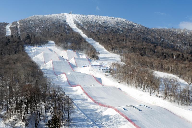 这是1月16日拍摄的位于亚布力滑雪场内的第九届亚冬会坡面障碍技巧场地和大跳台场地(无人机照片)。新华社记者 谢剑飞 摄
