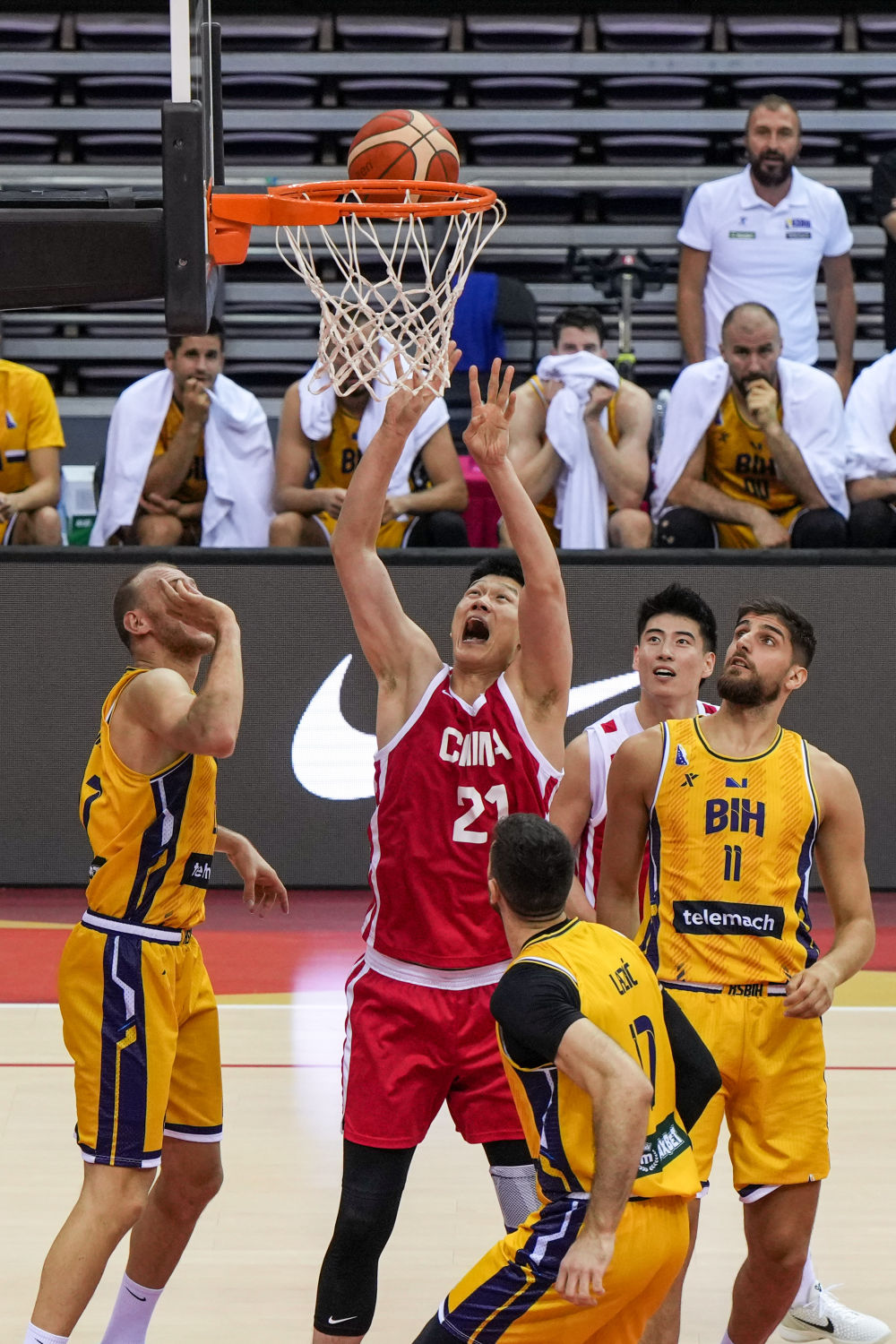 易边再战,中国队在第三节再度将分差扩大到两位数,以63:50领先进入最后一节。中国队在末节再度取得16分优势,但之后失误连连、进攻端状态全无,被波黑队打出一波进攻高潮,在最后一分钟时将分差缩小至3分。最后时刻,中国队又出现失误被对手抢断,但波黑队没能抓住机会,最终惜败。