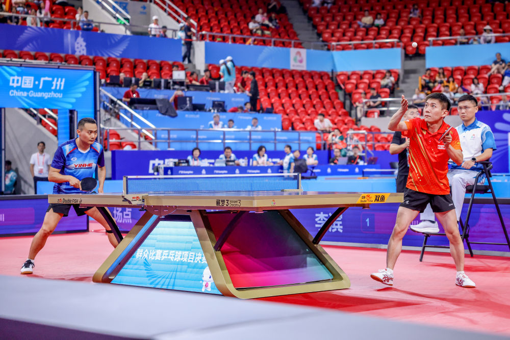 第十五届全国运动会群众比赛乒乓球项目决赛8月8日在广州天河体育中心体育馆、广州市羽毛球运动管理中心开赛。揭幕战中,东道主广东双东·汇鑫男队以3:2战胜上届冠军四川男队。