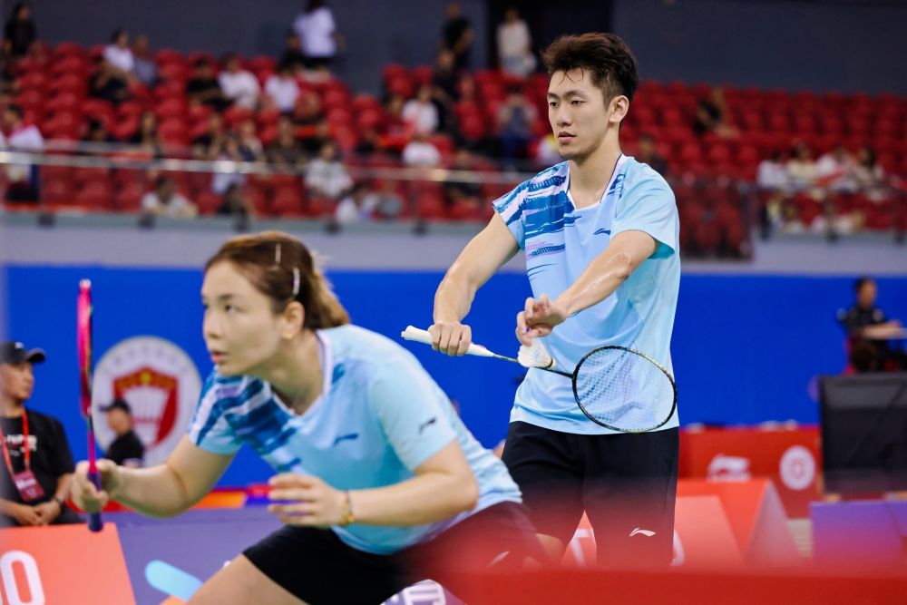 第十五届全国运动会羽毛球项目单项资格赛21日在湖北省宜昌市继续进行。广东队程星/陈清晨以2:0战胜湖北队陈治国/钱构鸿,拿到最后一个混双决赛阶段名额,至此三个双打项目资格赛全部结束。