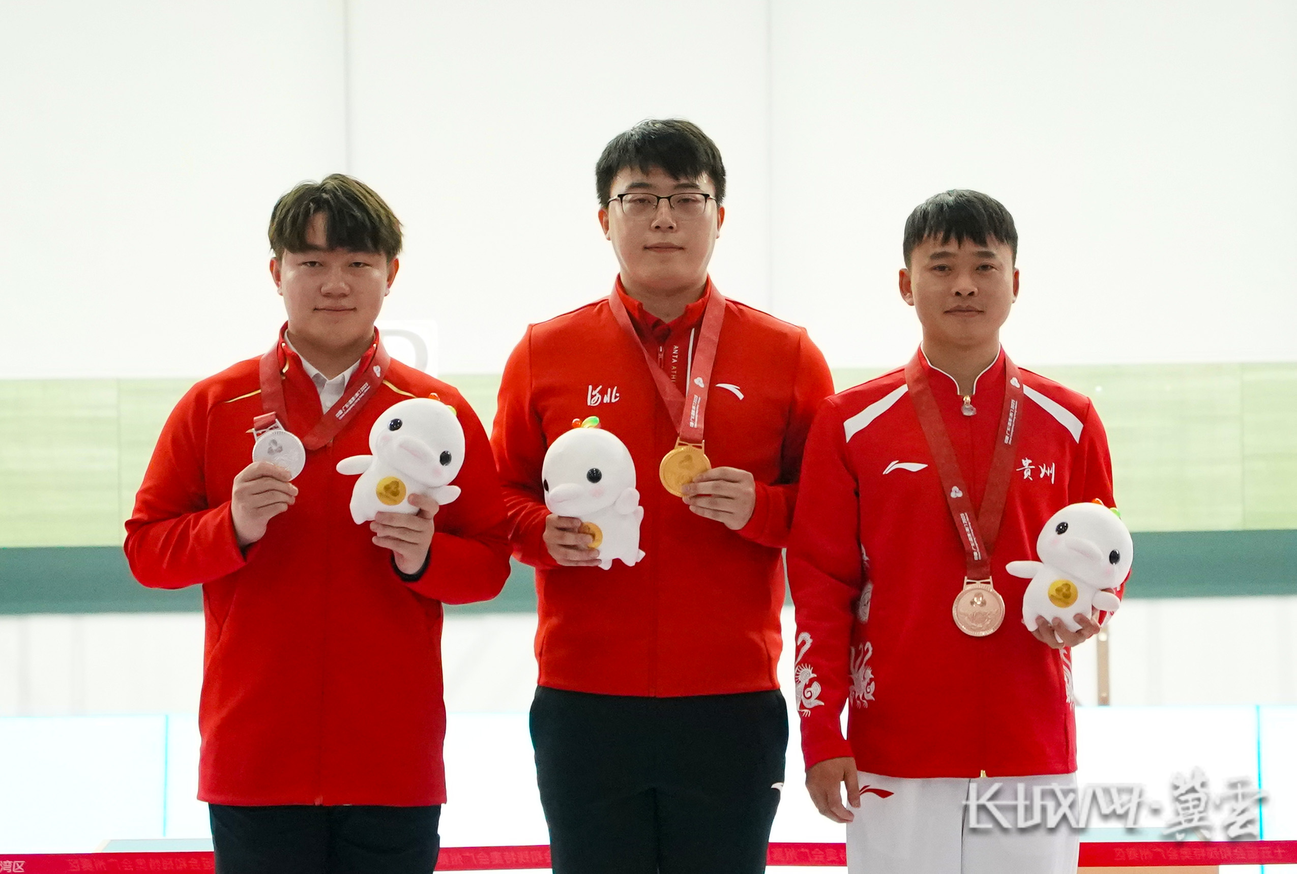 牛琪松(中)为河北射击首次夺得男子10米气手枪金牌。长城网·冀云客户端记者 韩颜 摄