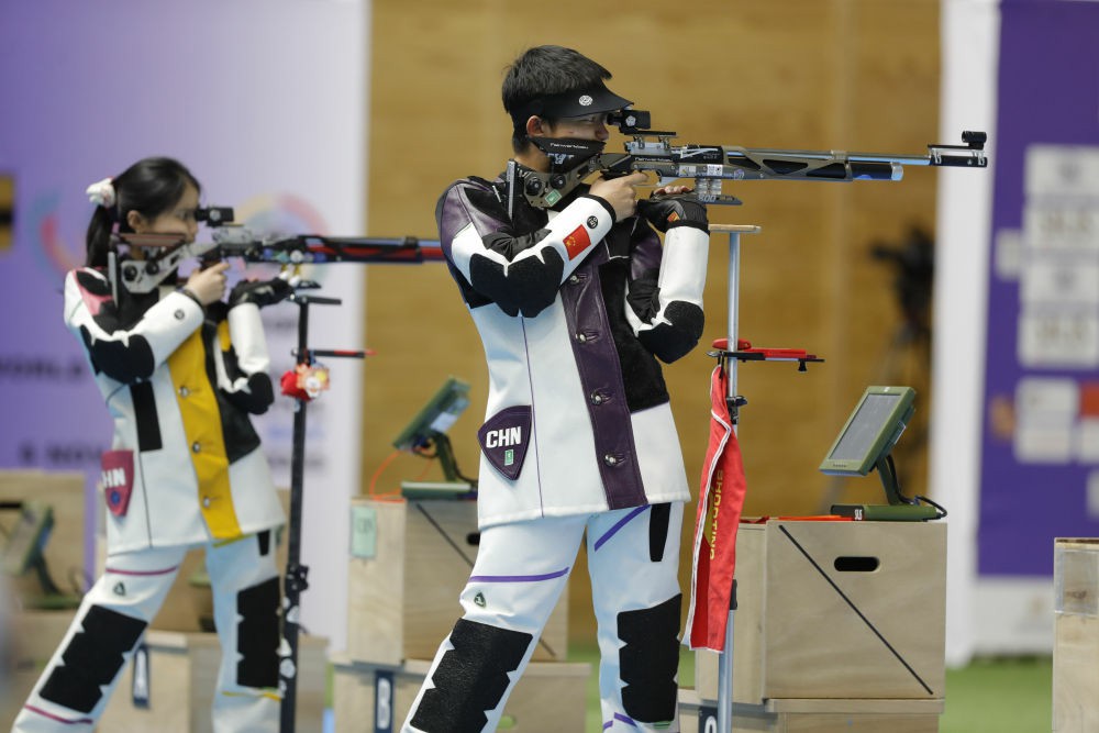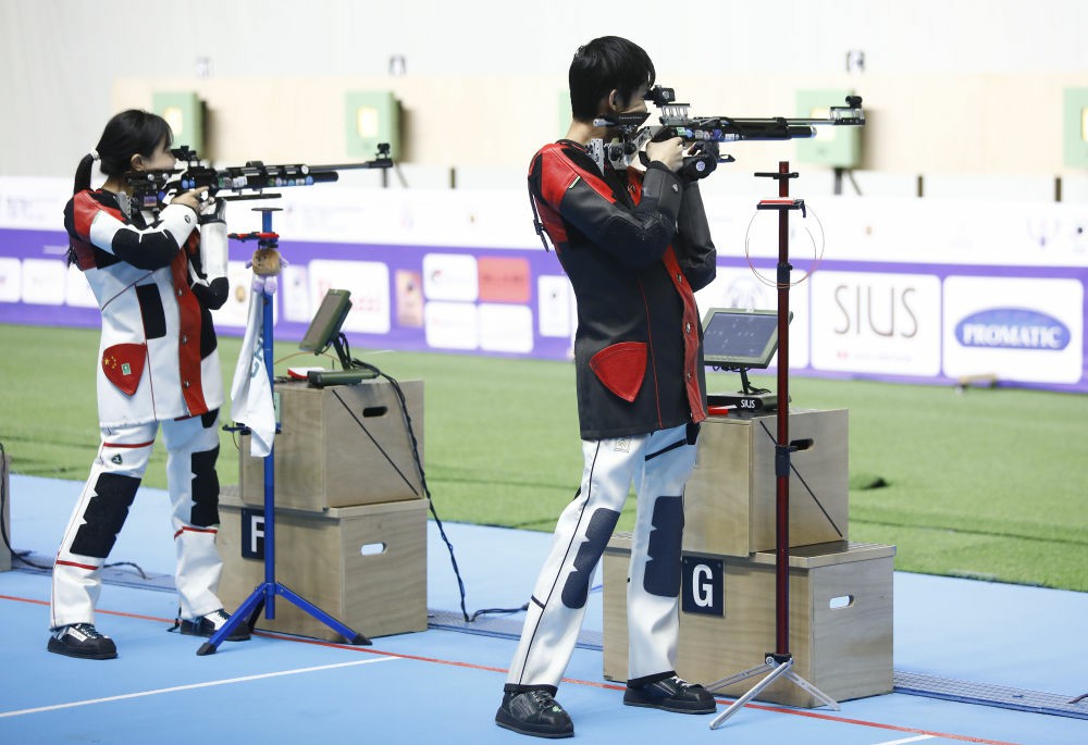 在11月9日进行的射击世锦赛比赛中,中国队王子菲/盛李豪和彭鑫露/王竑昊在10米气步枪混合团体项目中包揽金、银牌。