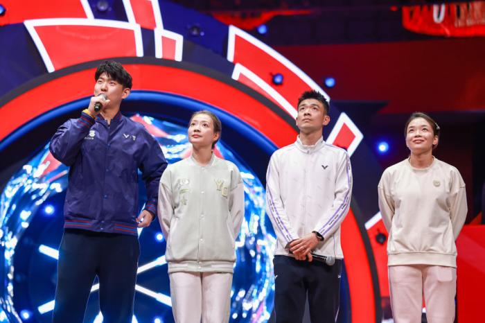 12月21日,刘雨辰、黄雅琼、郑思维、陈清晨(从左到右)在退役仪式上。新华社记者 江汉 摄