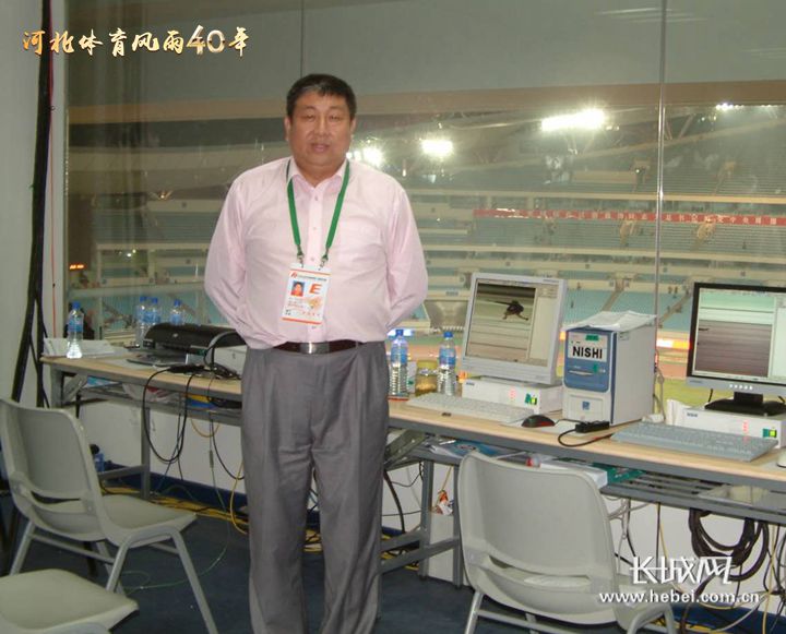 田径运动员出身的郑胜和身材高大,为人随和,田径场上总能听到他爽朗的笑声。这位魁梧的唐山大汉,外表看起来“大大咧咧”,实则心细如发。计时裁判是田径场上技术含量最高的裁判之一,运动员的竞赛成绩要精确到1/100秒,而电计时对运动员速度的判读,能达到1/1000秒,甚至1/4000秒。郑练介绍说:“人的眨眼速度大约是1/5秒,电计时的精度之高,对裁判员判定要求之严可见一斑。”“电计时技术刚出现时,人们怕出现故障,所以在九十年代初期,经常出现人工计时与电计时‘PK’的场面,也发生过一些很有意思的事情。”郑胜和告诉记者,1992年全国大学生田径锦标赛在山东举行,男子100米比赛中出现了非常精彩的一幕,不仅冠、亚军几乎同时冲过终点,第三至第六名也几乎并列。这时候,人工计时组犯了难,一直在核对成绩。而电计时组高速摄影机拍出的画面,很快就让成绩一目了然。“那是一张非常经典的电计时片子,后来我们把它拿给好几位裁判长看,他们都很佩服电计时技术。从那以后,打消了很多裁判长的思想顾虑,他们也开始认可了电计时确实是田径场上的一次革新。”
