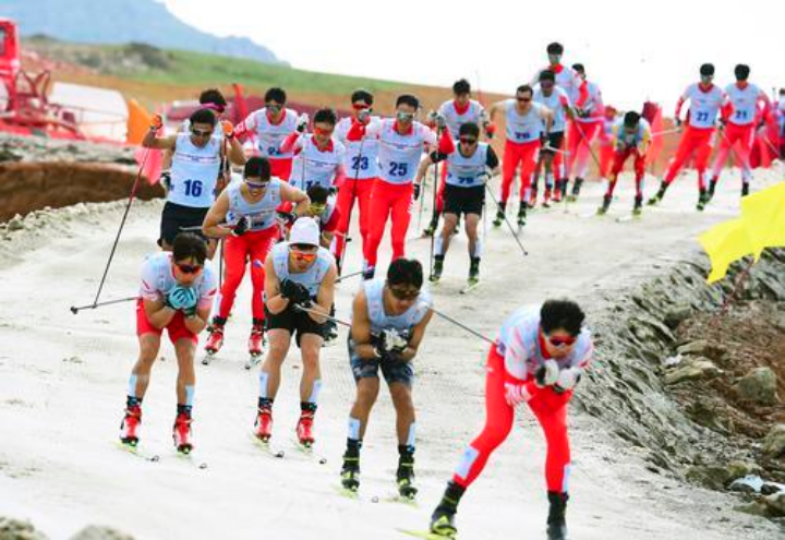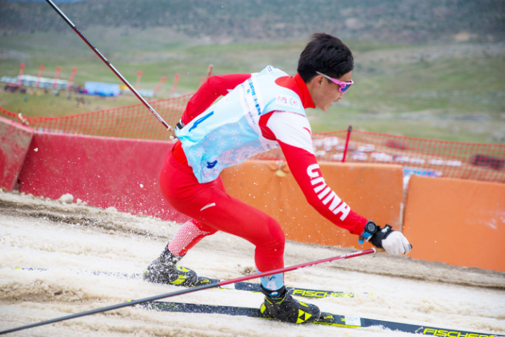 图为5月份,越野滑雪国家集训队队员参加2020-2021国际雪联越野滑雪FIS积分系列赛(阿勒泰站)比赛。图片来自新华社