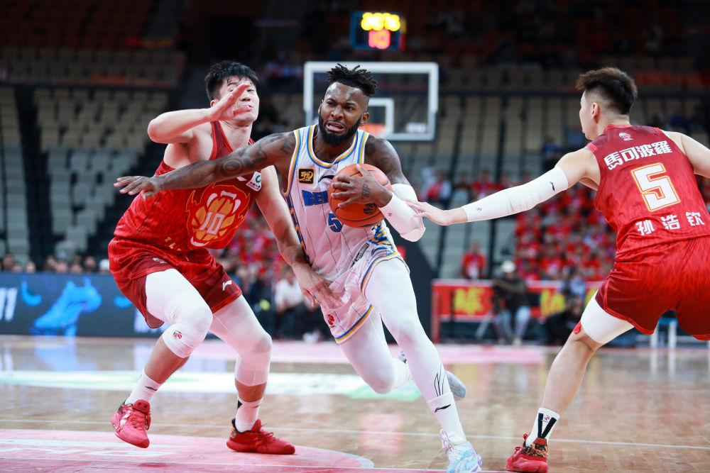 11月29日,北京队球员杰曼(中)在比赛中带球突破。新华社发(彭志刚摄)