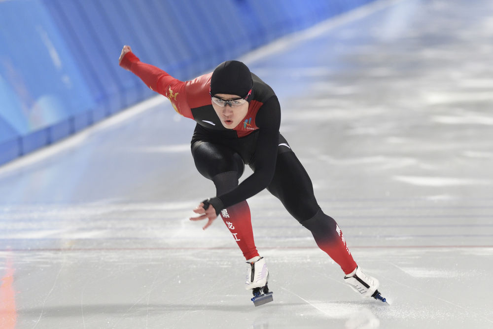 12月12日,黑龙江省冰上训练中心选手薛智文在比赛中。新华社记者 丁赫 摄