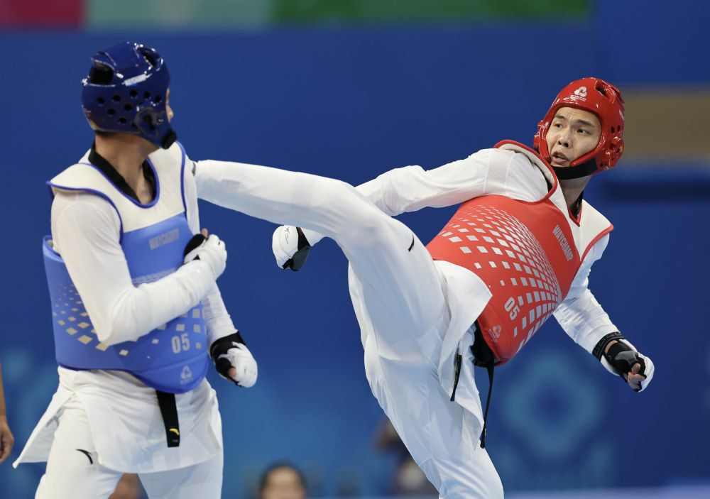 男子80公斤以上级决赛中,广东队选手王要锡在主场迎战山东队选手刘朝阳。首局,王要锡凭借中段和高位连续得分,以12:4轻松取胜。第二局,王要锡率先完成侧踢得分,刘朝阳在追分过程中出现犯规,最终王要锡再下一局,以总比分2:0获胜,为广东队再添一金。
