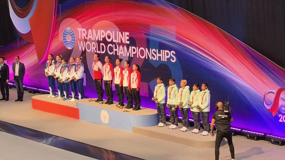在11月8日进行的第38届世界蹦床锦标赛中,中国队夺得女子网上团体冠军。