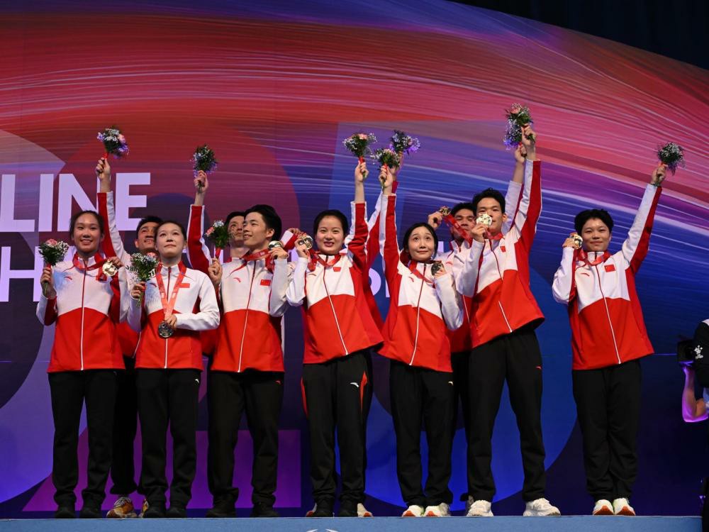 至此,本届蹦床世锦赛结束了全部16个项目的角逐,中国队共收获4金2铜,并诞生了8位新的世界冠军。2026年蹦床世锦赛将在南京举行。