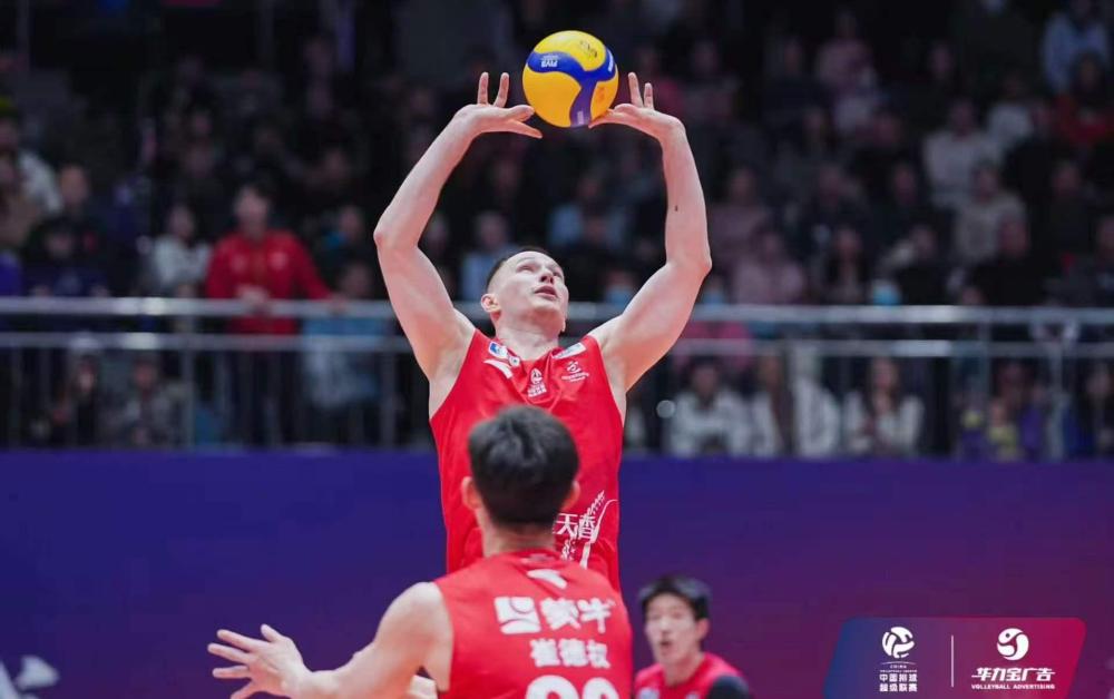 男排联赛决赛采取三场两胜制。首回合比赛,天津男排主场3:2击败对手抢得先机。第二回合,保定男排回到主场以3:0扳回一城。