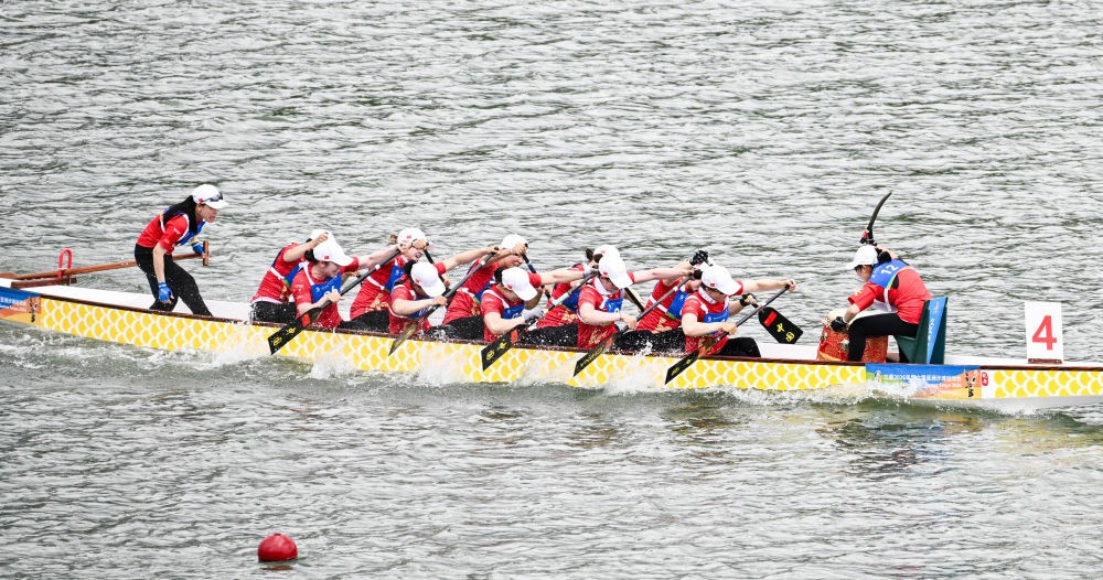 12人龙舟100米直道赛每队由1名鼓手、1名舵手和10名划手组成。25日,将迎来12人龙舟男子组、女子组200米直道赛决赛。